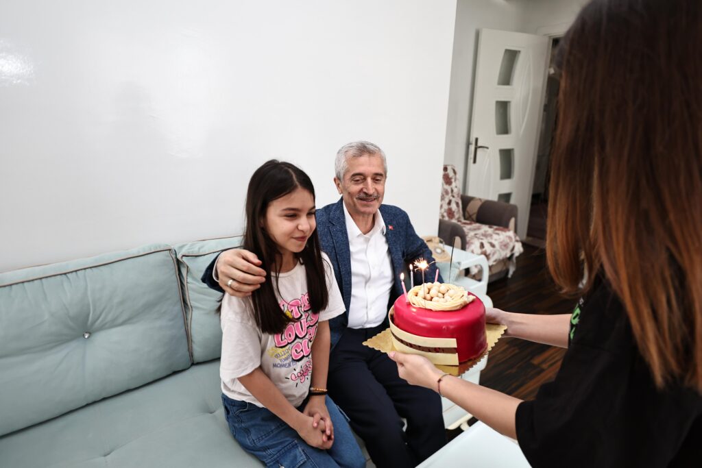 Nilay’ın ailesi de bu özel ziyaret nedeniyle Başkan Tahmazoğlu’na teşekkür ederek, böyle anlamlı bir günde yanlarında olmasının kendileri için çok kıymetli olduğunu belirtti. Ziyaret sırasında aileyle de sohbet eden Başkan Tahmazoğlu, çocuklara yönelik sosyal projelere ve aile bağlarının güçlendirilmesine önem verdiklerini vurguladı.